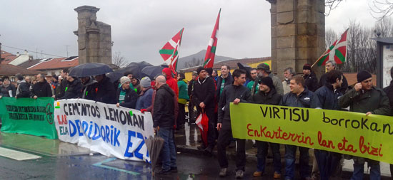 Cementos Lemona, Alfa eta Virtisu enpresetako eta administrazio publikoko hainbat langilek, besteak beste, elkarretaratzea egin dute Gernikan, Batzar Nagusien aurrean, 2013ko aurrekontu proiektuari aurkeztutako osoko emendakinen eztabaida plenoaren harira.