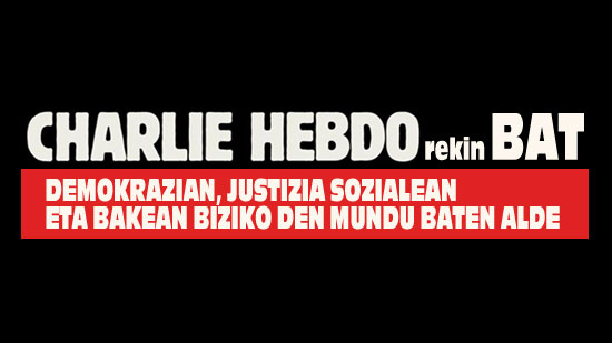 Adierazpen honekin bat egiten dugun talde eta norbanakook, asteazkeneko atentatua salatzearekin batera, geure samina eta elkartasun osoa agertu nahi diegu Pariseko erasoan hilik edo zauriturik gertatu diren pertsonen familiei, baita ere Charlie Hebdo astekariko kazetari zein langileei. Halaber, konpromiso sendoa adierazi nahi dugu adierazpen askatasunaren defentsan, oinarrizko giza eskubidea den heinean.