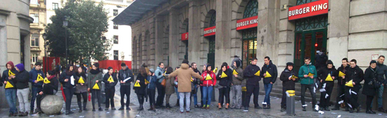 Burguer King bezalako enpresek (49,4 milioi euroko etekinekin) baita ere Mc Donalds, Pans and Company, Telepizza, Bocatta eta beste batzuk, gazteen esplotazioaz baliatzen dira haiek aberasteko, pairatzen duten prekarietatearen erantzule ere badira. Lanaldi partzialeko lan kontratuak, kaleratze eta argudiorik gabeko zigorrak, eskubideen urraketak, hitzarmen kolektiboa nahi duten bezala aplikatzea (estatala, etxera eramateko sukaldatutako produktuak lantzen dituztenena, 5,28 euro/orduko soldatarekin, dena barne), sindikalgintzaren kontrako jarrera, behin-behinekotasuna… eguneroko kontuak dira enpresa hauetan. Honi aurre egiteko batu gara LAB eta ERNAI.
