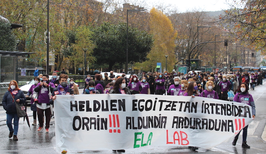 Gipuzkoako egoitzetako langileek manifestazioa egin dute Donostian, hitzarmen duinaren alde, asteko bigarren greba egunaren harira
