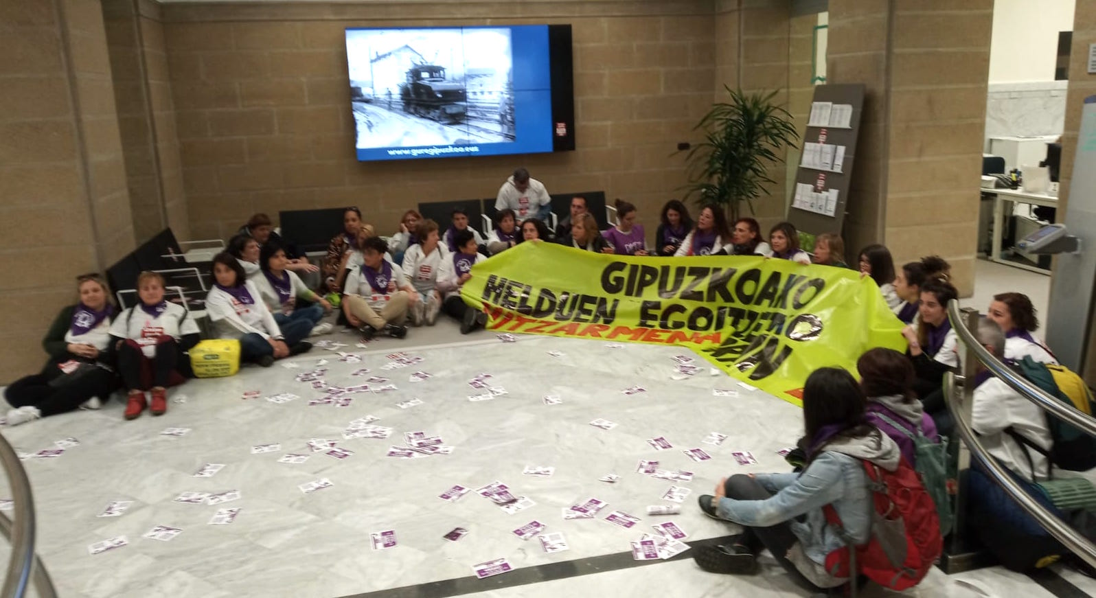Gipuzkoako Foru Aldundiak Donostiako Gipuzkoa plazan duen egoitzara sartu gara, bertan adinekoen egoitzetan herrialdeko sektoreko hitzarmen duina aldarrikatzeko. Hain zuzen ere, greba eta borroka deialdia egin dugu Gipuzkoako helduen egoitzetan, larunbata arte gauzatuko duguna. Hala, lehen greba egunean, Aldundiaren egoitza okupatu dugu. 11:00etan hasi dugu okupazioa eta kanpoan, okupazioari babesa emateko, protesta egiten egon gara. Okupazioa 15:30ean amaitu da, Gipuzkoako Foru Aldundia ohi baino bi ordu eta erdi lehenago ixtea erabaki dutenean, Foru Jauregia okupatzen ari ziren langileak kanporatzeko. Horrela, egoitza itxi eta banan banan atera ditu langileak Ertzaintzak, haietako asko arrastaka. Komunikabideetako langileek arazoak izan dituzte euren lana egin eta gertatzen ari zena kontatzeko, baita LABeko kideek ere, euren lan komunikatiboa egiteko.