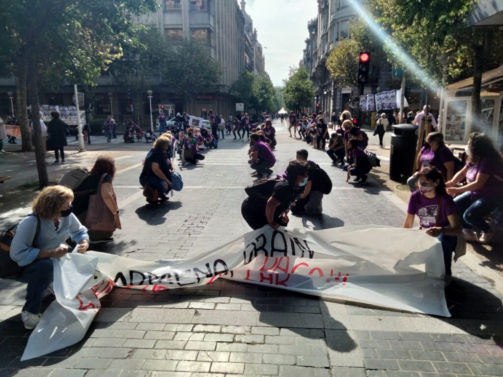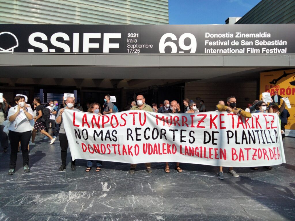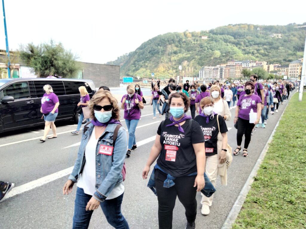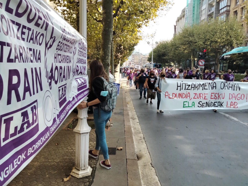 Lehen greba egunean, manifestazioa egin dugu Donostian, Sagues eta Gipuzkoako Foru Aldundiaren Jauregiaren artean, Zinemaldiko egoitza nagusietatik igarota. Hala, helduen egoitzen gatazka eta langileen egoera larria are eta gehiago jendarteratu dugu.