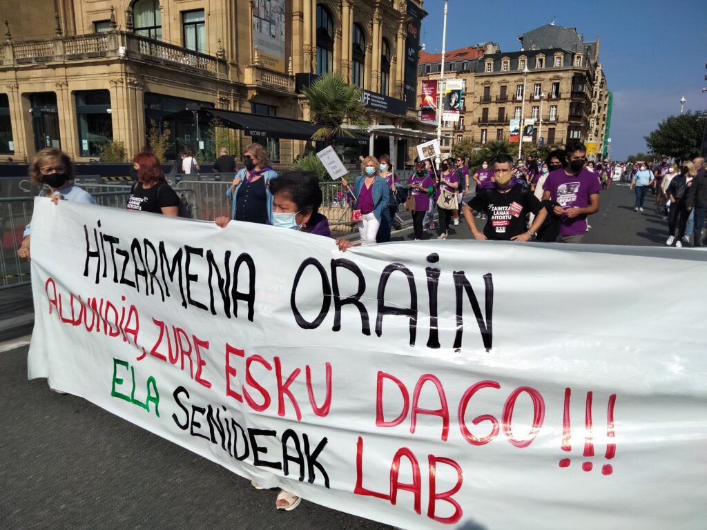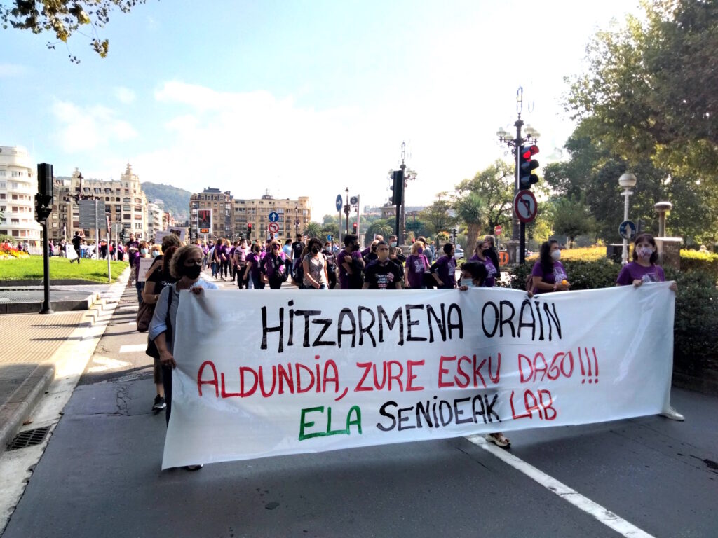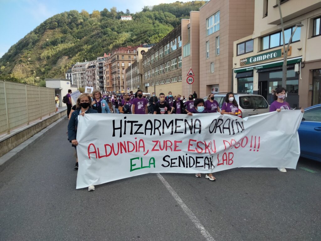 Hain zuzen ere, langileen, egoiliarren eta interes kolektiboaren defentsan irten gara kalera, helduen egoitzetao gatazkari behin betiko amaiera jar diezaioten: “Negoziazio kolektiboa berraktibatu eta gatazka hau desblokeatzeko momentua da, Osasun Larrialdian zehar langileek egindako esfortzu eta sakrifizioa mahai gainean jarri eta Administrazio Publikoari zein patronalari langileek merezi duten aitortza sozial eta ekonomikoa exigitzeko momentua da”.