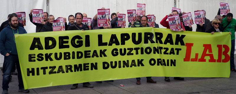 Azaroak 19, osteguna, LABeko Debaldeako metaleko delegatuen batzarra egin dugu, Gipuzkoako metaleko hitzarmenaren egoera aztertu eta honi nola aurre egin definitzeko. Ondoren, Eibarko Untzaga plazan konzentrazioa egin dugu, Adegiren erantzunkizuna salatzeko eta azaroaren 26an Donostian, Adegiko egoitzatik Batzar Nagusietara egingo den manifestaziorako deialdia egiteko.