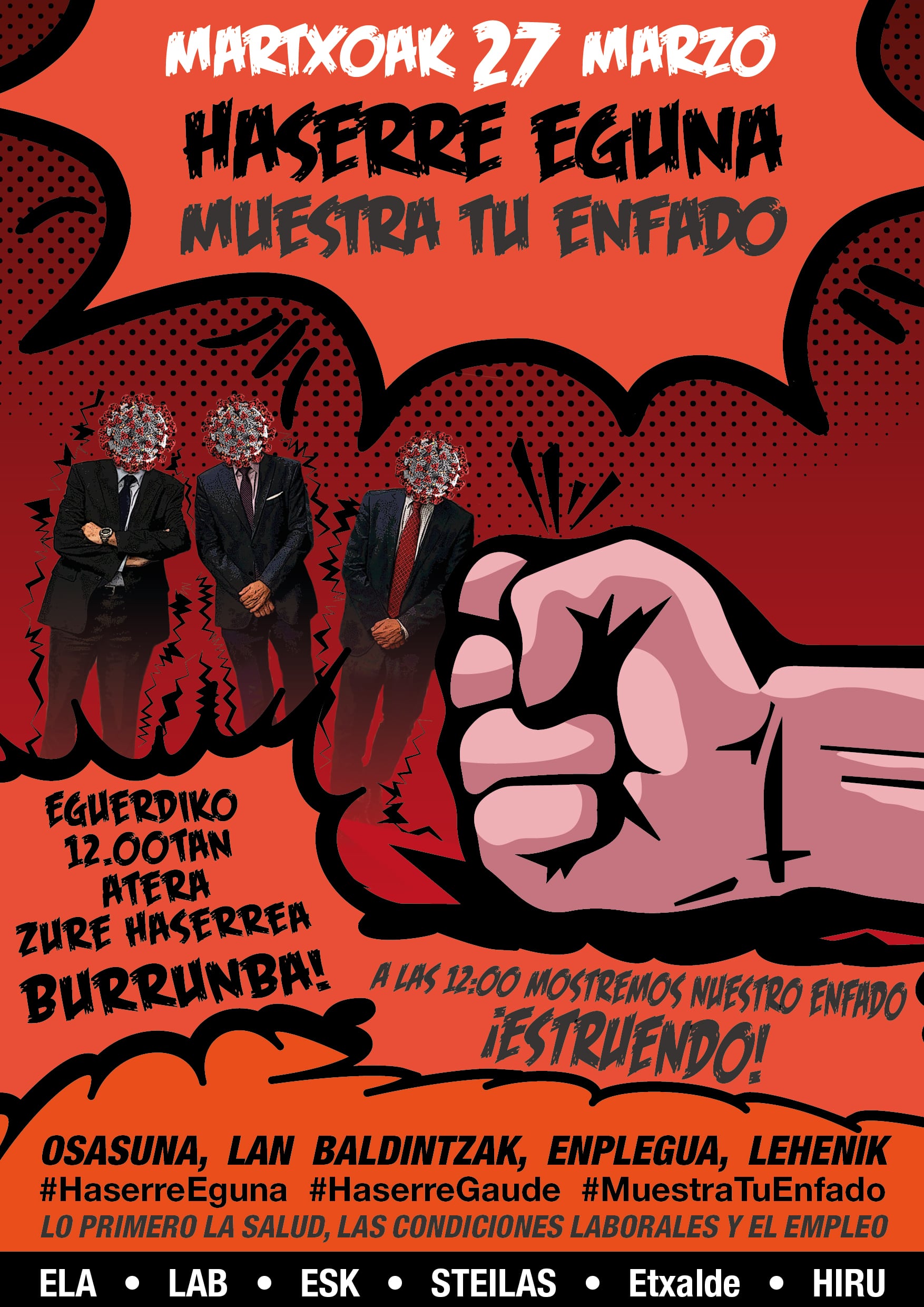 Gobernu eta patronalaren aldetik ez da inolako erantzunik egon. Neurri guztiak patronalari begirakoak izan dira. Berriro ere Jaurlaritza ahaztu egin da langileez. Biharko “Haserre eguna” inoiz baino beharrezkoagoa da eta langile guztiei dei egiten diegu beraien etxe zein lanzentroetatik beraien haserrea adieraztera.