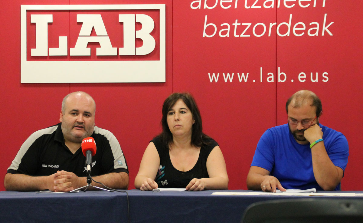 Gaur LABek prentsaurrekoa eman du Donostian. Bertan, Goierri-Urola Garaiko 43 lanpostu egiturazko plantilan sartzeko hasiko duen prozesu judiziala aurkeztu du sindikatuak. Goierri-Urola ESIko Zaida Casalesek, Arabako ESIko Jesus Oñatek eta Eneko Pascual Donostialdeko ESIko kideak hartu dute parte agerraldian.
