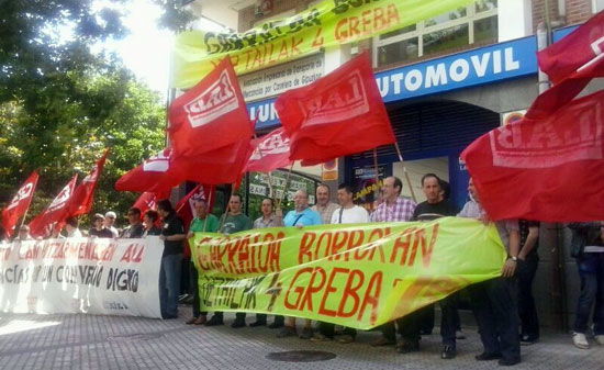 Gaur, LABek eta CCOOk deituta, elkarretaratzea egin dute salgaien garraioko langileek GUITRANS patronalaren egoitzaren aurrean. Bertan patronalak bilera zuen deituta.