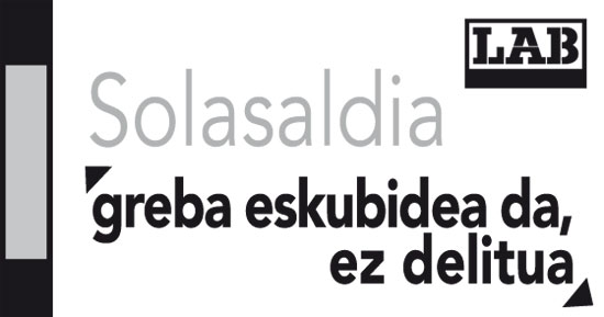 Datorren ostegunean, hilak 9, LABek antolatuta «Greba eskubidea da, ez delitua» solasaldia egingo da sindikatuaren Bilboko egoitzan. Borroka soziolaboral ezberdinen kriminalizazioaren berri eman da bertan eta LABekin batera Solidaridad Obrera eta Grebalariak Aske Plataformako kideek parte hartuko dute.