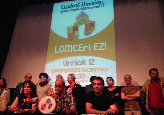 Euskal Herriko hezkuntza eragile gehienok, ikasle, familia, langile eta beste hainbat elkarte eta erakundek, argi adierazi dugu azken hilabete luzeetan Wert hezkuntza ministroak inposatu nahi duen LOMCE hezkuntza erreformarekiko gure aurkakotasuna.