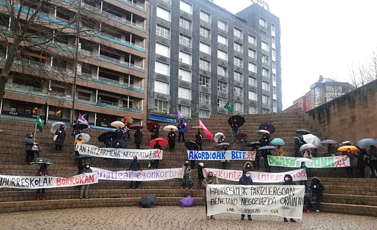 LAB, STEILAS eta ELA sindikatuok EAEko Hezkuntza Saileko sailburuari, Jokin Bildarratzi, haurreskolen etorkizunaren inguruan garbi hitz egin dezala eskatzen diogu, baita pandemiaren ondorioz baldintza ekonomikoak okertu zaizkien familiei Haurreskolak Partzuergoaren kuoten hobariak gauzatzeko, Eusko Jaurlaritzari egin zion eskaera nola gauzatuko den argitzea ere. Era berean, Legebiltzarrak eskatu zizkion erabateko doakotasunerako urratsak noiz emango dituen azaltzea dagokio.
