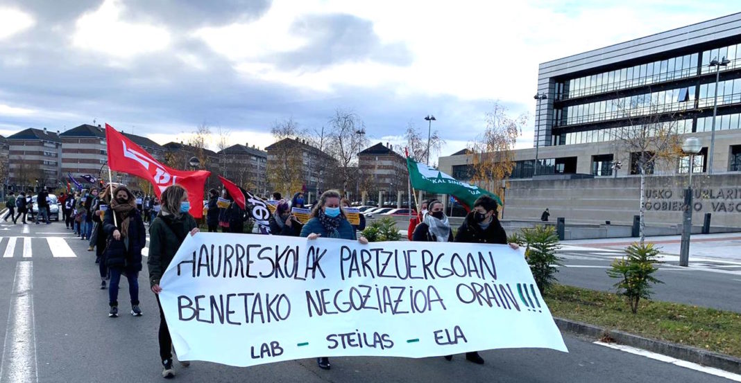 Negoziazio kolektiboaren kontrako eraso zuzena eta alde sozialaren lana oztopatzeko ahalegina salatu nahi ditugu, azpimarratuz urteetan zehar Haurreskolak Partzuergoan lortutako hezkuntza kalitatearen defentsan egindako lanarekin jarraitzea eta langileak mobilizazioen bitartez lortutako lan baldintzen hobekuntzen defentsan jarraituko dugula.