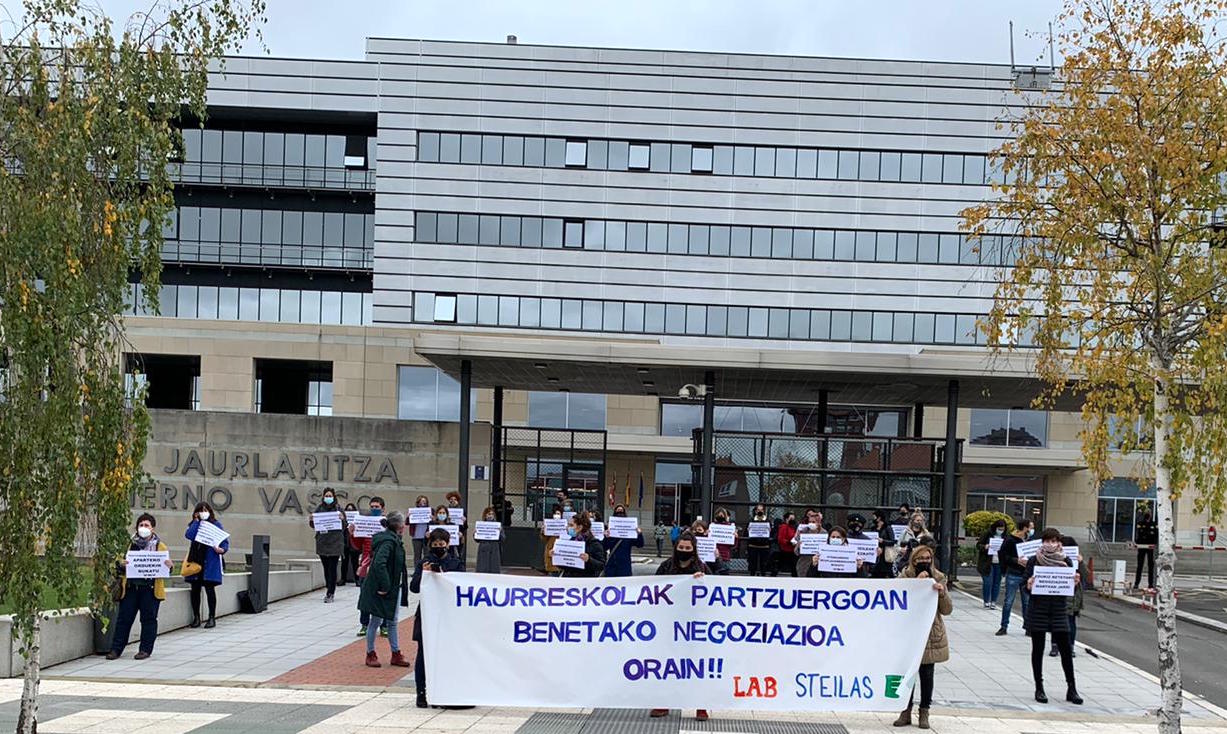 Horren aurrean, atzo Haurreskolak Partzuergoko gerenteari argi eta garbi azaldu genion, LAB, STEILAS eta ELA sindikatuok benetako negoziazioa martxan jartzeko exijitzen diogula, eta horretarako Hezkuntza Saileko ordezkaria egotea ezinbesteko baldintza dela. Ez dago aitzakirik ezta denbora galtzeko tarterik ere. Ikasturte honetan Gerenteak aldebakarrez hartutako erabakiek langileon eskubideak eta haurreskoletako hezkuntza proiektua bera kokolan jartzen dituzte, eta horregatik langileontzat garrantzitsuak diren gaien inguruko negoziazioa martxan jartzea premiazkoa da.