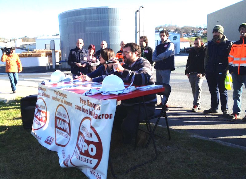 Alarma Soziala izeneko tresna aurkeztu genuen Baionan, joan den urrian. Hain zuzen ere, alerta sistema bat da, Macronen erreformak enpresa batean atzerapen sozialen bat ekartzen duenean aktibatuko duguna. Tresna honen nondik norakoak azaltzeko, industriagunetik industriagunera, lantegiz lantegi, ibiliko gara datozen hamar egunetan, "Tira-bira" kanpainaren eskutik. Gaurtik abiatuta, otsailaren 9 arte, Ipar Euskal Herriko hainbat txokotan izango gara langileekin egoteko.