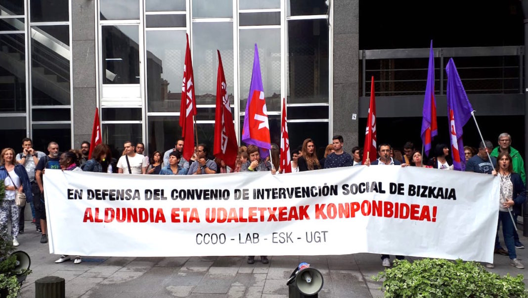 Bizkaiko Eskuhartze Sozialaren esparruan lanean ari diren langileek lanuzte partziala egin dute gaur, LAB, CCOO, ESK eta UGT sindikatuok deituta, joan den ekainaren 14ean egindako grebari segida emateko.