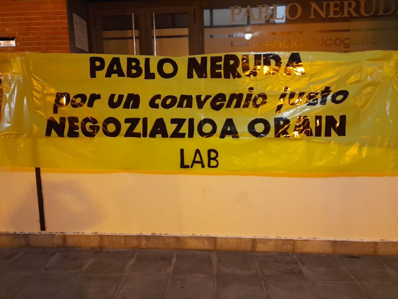 40 bat langile dituen Pablo Neruda egoitzak 21 urte daramatza zabalik, eta denbora tarte horretan gogor borrokatu behar izan dute beren lan-baldintzak hobetzeko, iraupen luzeko bi greba deitu behar izan zituztelarik. Indargabetutako hitzarmena berritzeko negoziatzen saiatzen ari dira, baina momentuz enpresak ez du horretarako borondaterik.