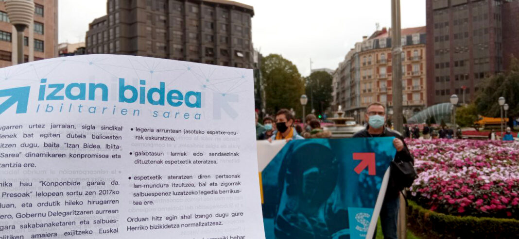 Sare erakundearen Izan Bidea ekimenaren baitan, ELA, LAB, UGT, ESK, Steilas, CGT, CNT, EHNE, HIRU eta Etxalde sindikatuok elkarretaratzea egin dugu Bilbon euskal presoen eskubideen alde. Presoen egoerari heltzea eta konponbide bat ematea premiazkoa dela adieraztearekin batera, bihar, urriak 23, arratsaldeko 17:00etan SAREk Donostian antolatu duen «ibilian Ibilian, presoak etxera» manifestazioan parte hartuko dugula iragarri dugu.