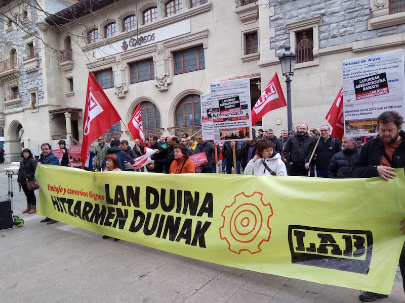 Hitzarmenak eguneratzeko eta industriako langileen lan baldintzak hobetzeko mobilizatzen ari gara egunotan. Gipuzkoako enpresen elkarte Adegiren egoitzan izan ginen atzo, Donostiako Miramongo teknologia parkean; bada, gaur, Arabako enpresarien elkarte SEAren egoitzaren aurrean egin dugu protesta, Gasteizen.