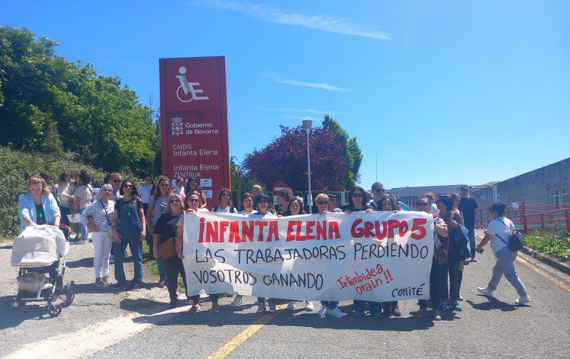 Desgaitasunen bat izanda arreta integrala behar duten pertsonak artatzen dituen Infanta Elena zentroko langileek elkarretaratzea egin dute gaur eguerdian, Cordovillako (Nafarroa) lantokiaren ondoan, protesta egiteko zenbait langileri lanaldia aldatu nahi dietelako -eta gutxiago ordaindu-, erizaintzako zuzeneko arretako orduak murriztu nahi dituztelako eta bertze langile askori ez dietelako antzinatasunik aitortzen nahiz eta lanean 15 urte baino gehiago daramatzaten. Infanta Elena Nafarroako Gobernuarekin itundutako zentroa da.