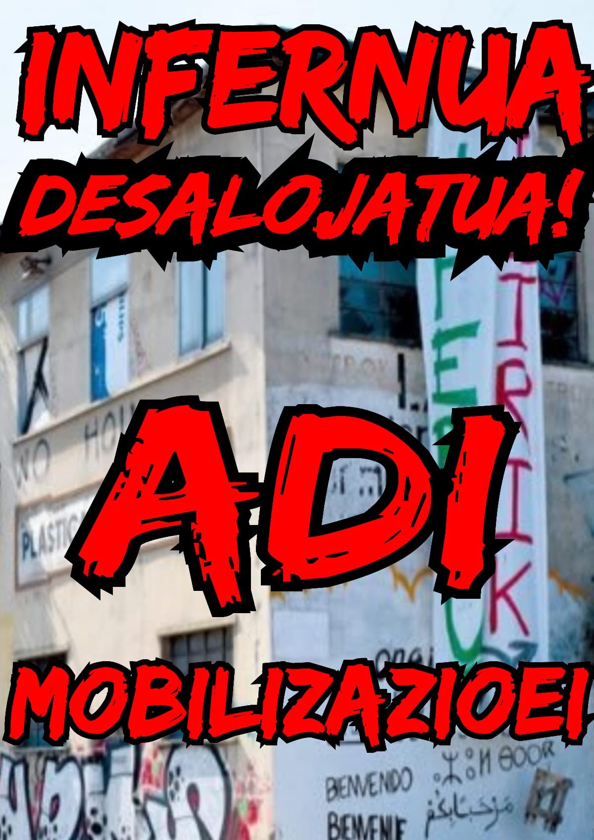 Infernuko auzoan hirigintza eredu eta sistema honek kanporatutako eta baztertutakoen erresistentzia gauzatzen dela badakigu, prekarietatea bizi duten herritarren eta egoera zaurgarrian dauden bizilagunen bizitokia dela. Hain zuzen, arduradun politikoek eta instituzio publikoek herritarron eskubideak sistematikoki urratzen dituztelako auto antolatzen diren herritarrei, eta sistemaren hutsuneak bistaratu, salatu eta eraldaketa proiektuak gauzatzea ahalbidetzen duen okupazioari, jazartzen ari zaie. EAJ-PSEren kudeaketa instituzional penagarriaren beste erakusgarri bat: pandemiak azaleratutako behar sozial eta premiakoei erantzuteko konpromisorik adierazi ez bezala, oraingoan ere, non daude baliabideak?