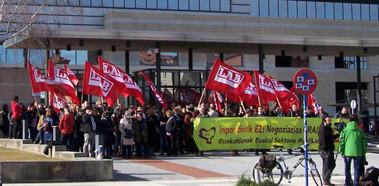 LABeko 160 ordezkarik euskal sektore publikoa garatzeko estrategia zehazteko batzarra, eta ondoren Lakuako egoitzaren aurrean kontzentrazioa egin dute gaur EAEko Mahai Orokorraren benetako negoziazioa ireki dadin exijitzeko.