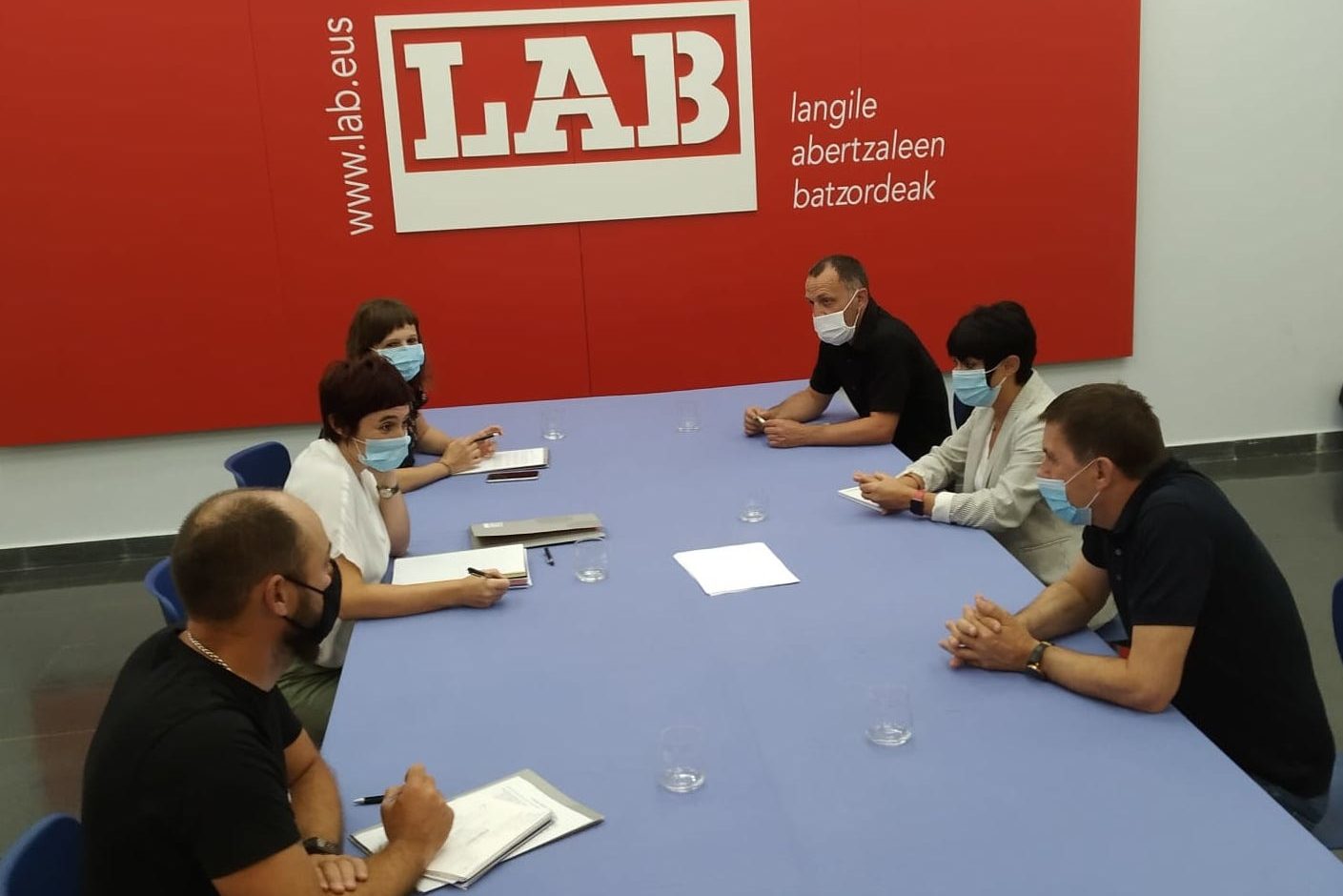 Garbiñe Aranburu Idazkari Nagusia, Edurne Larrañaga Ekintza Sozialeko Lurralde Egiturako Idazkaria eta Dabid Lizarralde Eraketa Idazkariak osatutako LABen ordezkaritza batek bilera egin du gaur EH Bilduren ordezkaritza batekin, azken hau eragile sozial eta politikoekin egiten ari den bilera-errondaren barruan.