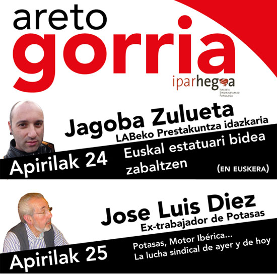 Ipar Hegoak argitaratutako berri duen "Euskal estatuari bidea zabaltzen" liburu bilduma aurkeztuko du gaur arratsaldean Jagoba Zulueta, LABeko Prestakuntza idazkariak. Saioa arratsaldeko 18:00etan emango zaio hasiera eta streaming bidez ikusteko aukera izango da. Bihar, apirilak 25, Jose Luis Diez, Potasako langile ohiak, atzoko eta egungo borrokaz mintzatuko da.