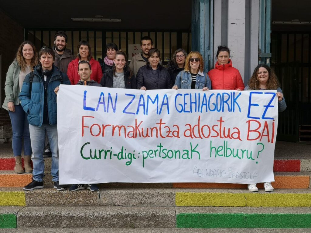 Mobilizazio dinamika abiatu dugu gaur “Lan Zama gehiagorik ez, formakuntza adostua bai! Curri-digi: pertson@k helburu?” lelopean, EAEko Hezkuntza Publikoko irakasleei curri-digi izeneko formakuntzak sortutako noraeza, lan zama handitzea, eta ordutegiz gaindi lan egitea salatzeko. Araban hasi dira prestakuntza era adostuan antolatzeko eskatzeko egingo dituen mobilizazioak.