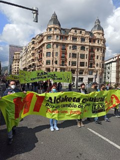 Hogeita hamar mobilizazioetatik gora egin ditugu Euskal Herrian, Maiatzaren Lehenaren etorrerarekin, “Aldaketa da aukera. Por un cambio de rumbo. Zaintza, lana, bizitza, herria” leloarekin. Eskualde guztietan izan gara aldaketa eta trantsizio ekosozialista eta feminista aldarrikatzen. Irudi asko utzi ditu egunak.