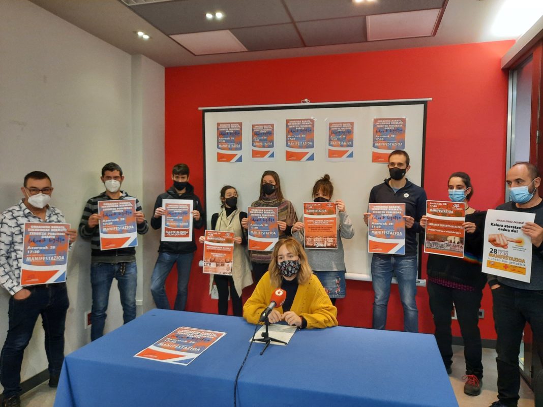ELA, LAB, ESK, STEILAS, CGT/LKN, CNT, HIRU, EHNE eta Etxalde sindikatuek elkarretaratzeak egin dituzte gaur Bilbon, Donostian, Gasteizen eta Iruñean, “Ezin da gehiago luzatu,...