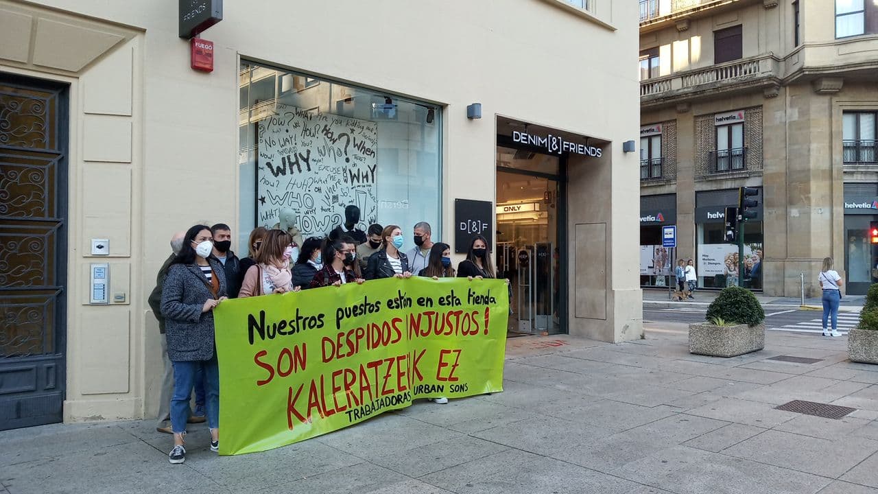 Urban Sons markako langileek elkarretaratzea egin dute, orain Denin and Friends izena duen Iruñeko dendako atearen aurrean, euren egoera salatzeko.