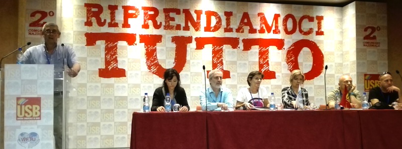 USB sindikatua Italiako klase sindikatuaren ordezkari izanik, Munduko Federazio Sindikalaren parte da, LAB bezala. Horregatik, nazioarteko gonbidatuen artean Geziako PAME sindikatuak, Kubako CTC-ko ordezkariak, Txipreko PEO sindikatuko ordezkariak, Palestinako ordezkariak eta LABek hartu dugu hitza, eta nola ez Munduko Federazio Sindikalaren idazkari nagusi George Mavrikosek ere.