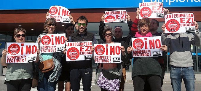 Nahiz azaroaren 1a jai eguna izan Nafarroan, saltoki handiren batek egun horretan bere ateak irekiko dituela-eta, LAB sindikatuak bere apustua berresten du ezein saltokik ez dezan ireki jai egun edo igandeetan. LABek merkataritza guneei eta saltoki handiei exijitzen die ez irekitzeko eta dei egiten die kontsumitzaileei jaiegunetan eros ez dezaten, ekintza horrekin ari baitira saltoki txikien behin betiko itxiera laguntzen, bai eta egun horietan lan egitera behartuta dauden pertsonen lan baldintzak prekarizatzen ere.