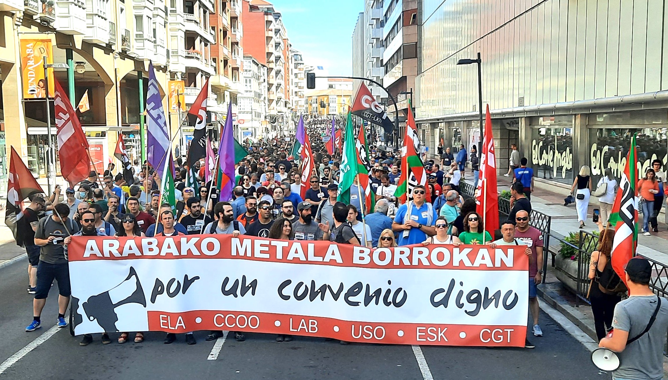 Gaur Arabako metalgintzako lehenengo greba eguna izan da, LAB, ELA, CCOO, USO, ESK eta CGT sindikatuok deituta, eta oso jarraipen garrantzitsua izan du enpresa handi zein txikietan. Horrekin, sektoreak mezu argia helarazi dio SEA patronalari: Nahikoa da, hitzarmen duin bat orain! Eguerdiko manifestaldian ere, milaka eta milaka pertsonek parte hartu dute, egun historiko honen isla moduan.
