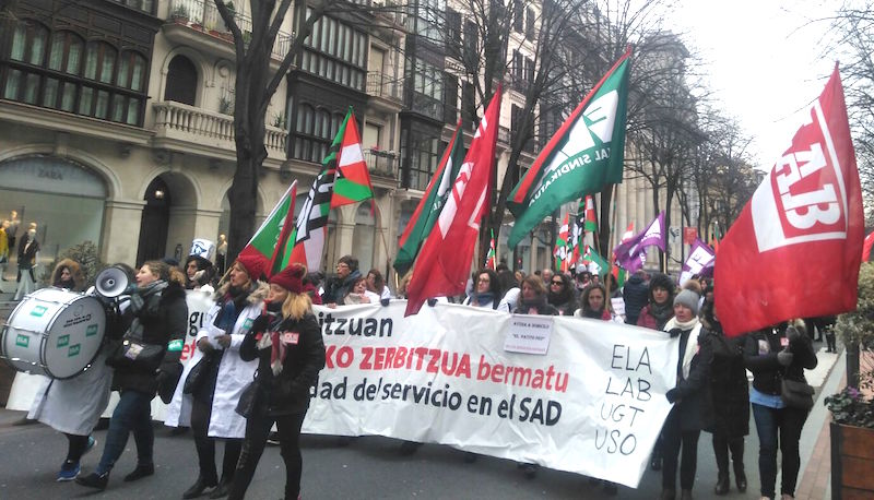 Bizkaiko etxez etxeko laguntza zerbitzuko langileek hiru orduko lanuztea egin dute gaur, 10:00etatik 13:00etara, zerbitzu eta enpleguaren kalitate hobea eskatzeko. Bilboko udaletxetik Bizkaiko Foru Aldundira manifestazioa egin dute, eta azken asteetako mobilizazioei eman diete segida horrela.