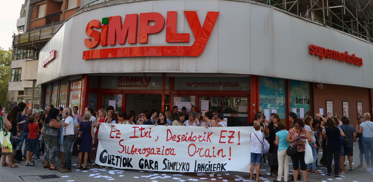 Enpresak erakutsitako interes falta honen eta geratutakoaren aurrean, Bizkaiko Simplyko batzordeek eta Grupo Norte azpikontratako langileek kontzentrazioa egin dugu Bilboko Autonomia kaleko 53an dagoen Simply saltokiaren aurrean, gaur asteazkena, abuztuaren 30ean, “Guztiok gara Simplyko langileak!” lemarekin, 12:30etik 13:00etara. Pasa den abuztuaren 24an ere kontzentrazioa egin genuen Gordoniz kaleko Simplyn. Alde batetik, langileak jasaten ari garen jasanezinezko prekarietate egoera salatu dute eta bestetik, etzirako, irailaren 1erako aurreikusita dagoen Grupo Norteko 31 lankideen kaleratzeen aurrean, subrogazioa eskatu. Gure ustez, Simplyko langileak dira hauek ere.
