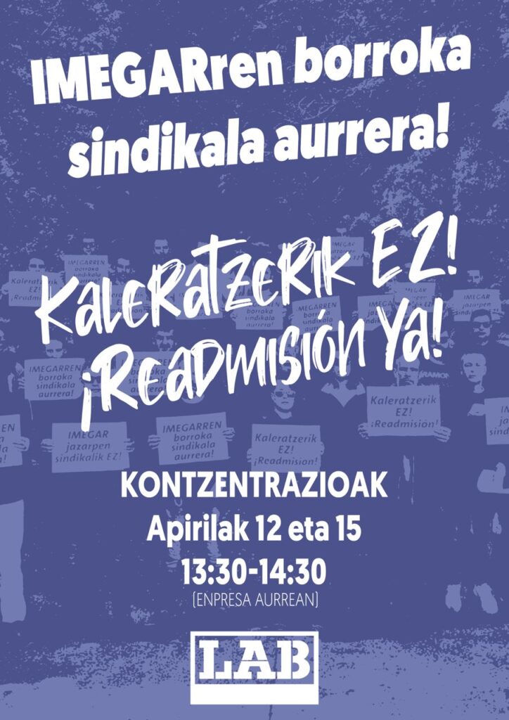 LABek berriro dio egoera honen aurrean elkartasun eta borrokarako deia egiten duela, bai lantokian, baita eskualdean ere. Ez du onartuko lan sindikala burutzeagatik edozein delegatu edo langile kaleratzea.