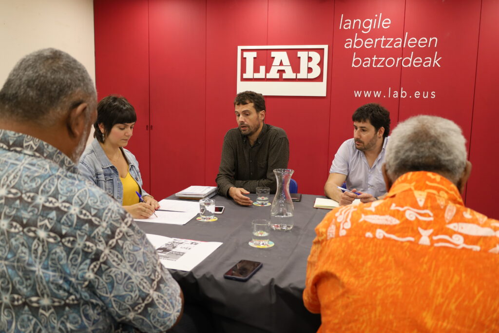Igor Arroyo koordinatzaile orokorrak, Argitxu Dufau Ipar Euskal Herriko arduradunak eta Koldo Saenz Nazioarteko idazkariak osatutako LAB sindikatuaren ordezkaritza bat FLNKSeko (Kanakyako Nazio Askapen Mugimendu Sozialista) ordezkaritza batekin bildu da gaur Donostian. Kanakyatik etorritako ordezkaritza FLNKSeko exekutiboko kide eta Kanakyako gobernuko kanpo aferen arduraduna den Mickael Forrestek eta FLNKS-eko exekutiboko kide nahiz Batasun Kaledoniarreko Komisario Orokor ondokoa den David Wanabo-k osatu dute.