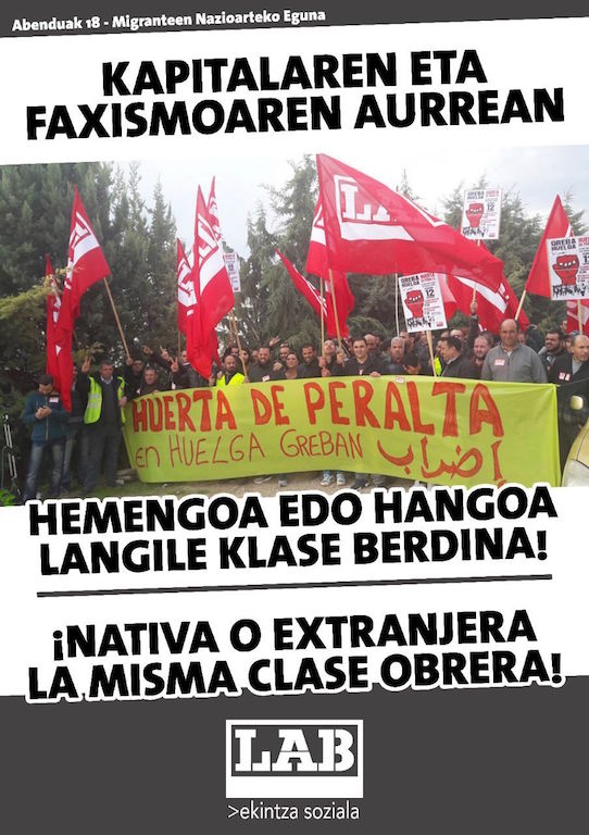 Hauxe da LAB sindikatuak egindako adierazpena, Migranteen Nazioarteko Eguna dela eta: