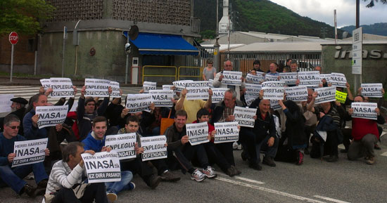 Los que hoy estamos aquí queremos alertar a la sociedad Navarra del inminente desmantelamiento de INASA. Hoy tenemos hay detras más de 15 trabajadores dispuestos a empezar con el desmantelamiento de la planta de IRURTZUN. Los pasos que puedan dar esos señores con soplete en manos pueden volverse irreversible la situación cuando tanto el gobierno de Navarra como los administradores Concúrsales y el juzgado de lo mercantil, saben que la semana que viene el 13 de junio de 2013 se formalizara una oferta por un inversor real para hacerse con la totalidad de la compañía y garantizar la continuidad del empleo en INASA.
