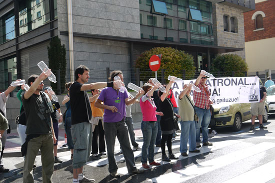 Al igual que lo hiciera la semana pasada frente a la sede de Confebask, LAB se ha concentrado hoy frente a la sede de la CEN para lanzar un mensaje claro a la patronal: "A la patronal !ni agua!. Parean izango gaituzue"