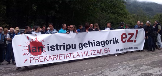 Gaur, LAB sindikatua euskal gehiengo sindikatuekin batera, Antzuolako San Blas baselizako bidegurutzean elkarretaratu da, azken 3 astetan izan den seigarren istripu hilgarria salatzeko. Atzo goizean, Dumper bat gidatzen ari zela gertatu zen istripu hilgarria.