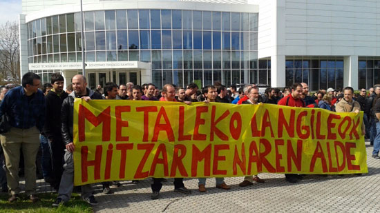 Gaur, martxoak 21, LAB sindikatuak Gipuzkoako metaleko delegatuen batzarra burutu du eta ondoren, metalgintzako hitzarmenaren negoziazioak pairatzen duen blokeoa salatzeko ADEGI patronalaren aurrean elkarretaratzea egin du.
