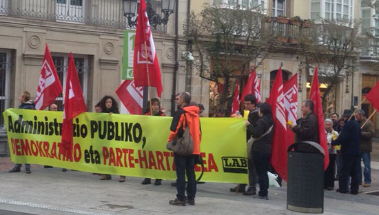 Oso abiapuntu ezberdineko egitasmoak izanda, guztietan PNVk zuzentzen dituen sailek negoziazio eta parte hartzerako erakutsi duten jarrera eskaxa salatu nahi dugu. Zentzu honetan eskaera zuzena egin nahi diogu Iñigo Urkulluk zuzentzen duen gobernuari: sektore publikoaren berdefinizio eta berrantolaketa ariketa hori guztion artean egin dezala; era parte hartzaile eta demokratikoan; langileak, bere ordezkariak, herritarrak (zerbitzu hauen onuradun zuzenak izan behar diren heinean) eta inplikatuak dauden eragile sozialei ateak irekiz.