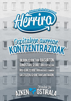 Datorren ostiralean, hilak 24, mobilizazioak burutuko ditu “Herrira” mugimenduak ospitale zein herrietan eta auzoetan. Eguerdiko 12:00etan burutuko dira ospitaleetako kontzentrazioak, Basurton (Bilbo), Donostian, Virgen del Caminon (Iruñean) eta Santiagon (Gasteizen). Arratsaldez, ohiko mobilizazioak burutuko dira herri eta auzoetan. Mobilizazio hauen bidez gaixotasun larriak dituzten presoak aske uzteko aldarrikapena zabalduko da.