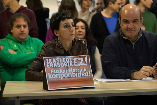 «Bestelako hezkuntza eredu baten alde lan egiteagatik gaude hemen. Hezkuntza eta herri eragileetako zein instituzio ezberdinetako ordezkariak batu gara. Ez dugu hezkuntza eredu beraren alde egiten baina proiektu guztiak gauzagarri izan daitezen baldintza demokratiko berdinak izan nahi ditugu. Eskubide zibil eta politikoak pertsona guztientzat aldarrikatzen ditugu.