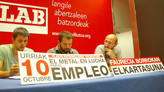 Gaur egindako prentsaurrekoan, LABek Metalgintzako Patronalari muga jartzeko beharraz ohartarazi du: “Patronalaren estrategia bateratuari modu bateratuan egin behar zaio aurre, sektore bezala enpleguaren alde eta patronalaren txantaiaren aurka borroka eginez”. Lanuzteak ostegun honetan, urriak 10, burutuko dira: 04:00-06:00 gaueko txandan, 12:00-14:00 goizekoan eta 14:00-16:00 arratsaldekoan. Iruñerriko metalgintzako enpresak daude deituta. Mobilizazio nagusiena Landabenetik abiatuko da, 12:30etan Danatik, Faurecia parean (Orkoien) amaitzeko.