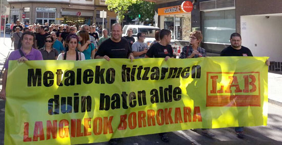 Metaleko patronalaren inposaketa jarrera hau ezin uler daiteke ELA, CCOO eta UGT sindikatuei jarrerari so egin gabe, beste aldera begiratzen dutela, herrialdeko hitzarmen baten alde borrokatu beharrean. Beste sektore batzuetan sindikatu ezberdinen arteko mobilizazioen bitartez posible denean herrialdeko hitzarmenak sinatzea, lan erreformari atea ixten dioten klausulekin, zergatik ez da metalean posible?