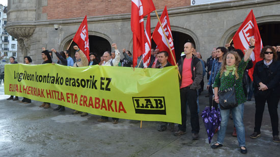 “Langileek aurkako erasorik ez! Euskal Herriak hitza eta erabakia!”. Horixe da pankartako lema. Euskal Herriak bere erabaki propioak hartzeko eskubidea dauka. Euskal Herrian badago alternatiba eta posiblea da eredu sozial, ekonomiko eta politiko propioa, bizi-baldintza duinak bermatuko dizkiguna berton lan egin eta bizi garenei.