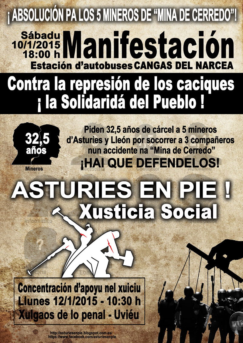 Urtarrilean mehatzetako 5 langile auziperatuak izango dira. Bost langile hauei 32,5 urteko kartzela zigorra eskatzen diete Cerredoko mehatzean 2012ko Uztailak 12an izandako istripu batean beraien lankideak laguntzearren.
