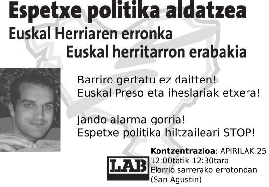 LABek Elorrioko Andoni presoaren egoera salatzeko antolatutako Elkartasun Martxarekin bat egiten du
